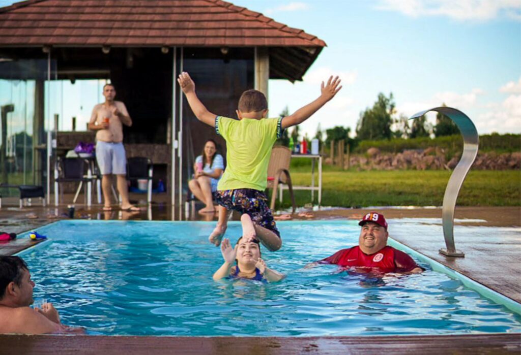 Aproveite momentos de lazer e diversão na piscina externa ao ar livre.